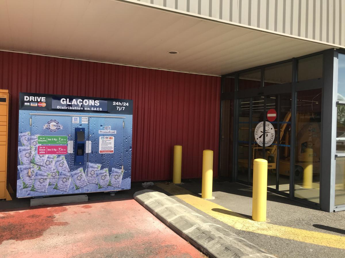 Retrouvez votre distributeur de glaçons préféré devant l\’entrée de votre INTERMARCHE à VERDUN SUR GARONNE ! Plus besoin de votre machine à glaçons, oubliez votre frigo américain, ICE STORE c\’est :